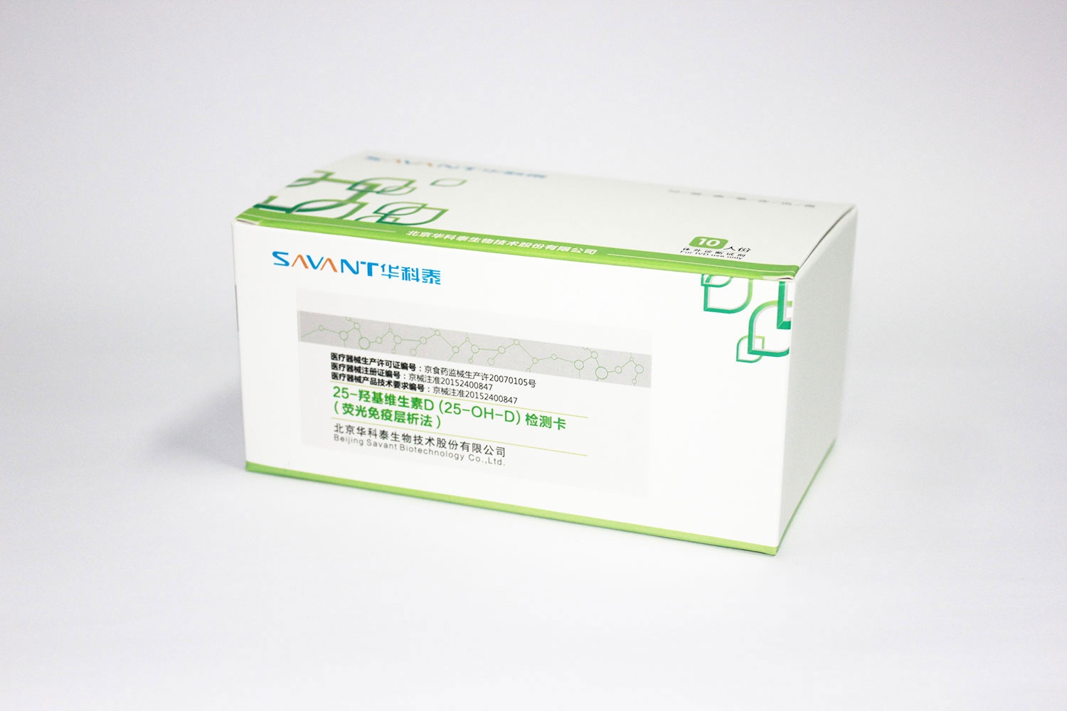 本检测卡用于体外定量测定人血清、血浆或全血中25羟基维生素D的含量。 25-羟基维生素D是一种代谢产物,可在血中检出,由于它是人体中维生素D的主要储存形式,能够促进肠道对钙的吸收以及调节钙平衡。维生素D是维持骨骼健康的主要元素。儿童期维生素D的严重缺乏将导致骨骼畸形,即佝偻病。25-羟基维生素D浓度降低与骨密度下降有关。结合其它临床资料,检测结果有助于评估骨代谢情况。